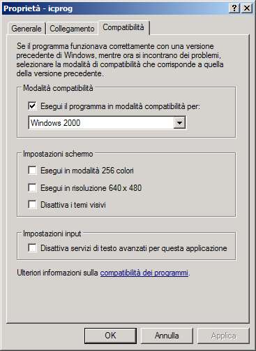 Per i sistemi WXP dovranno selezionare la compatibilità Windows