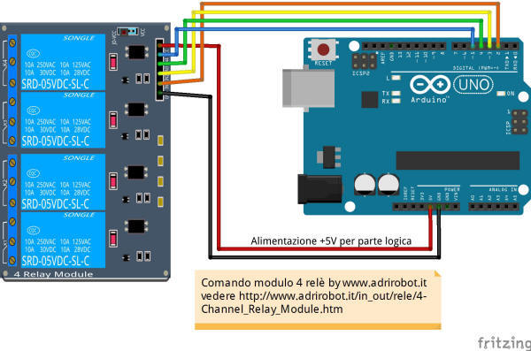 | Arduino UNO | Modulo relè a 4 canali con foto accoppiatore |